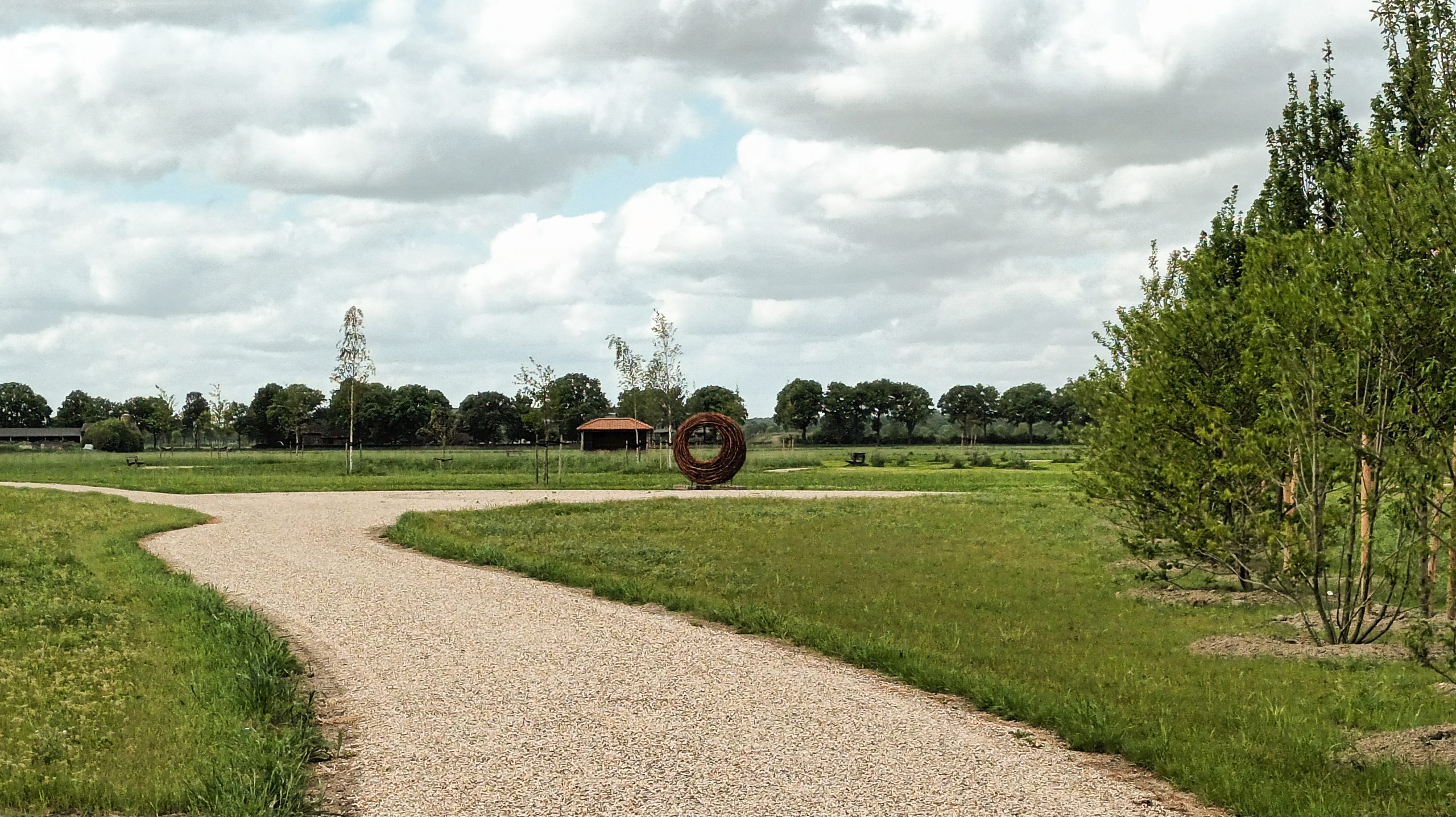Op de natuurbegraafplaats zijn alle paden aangelegd. Ook het Gedenkhuis, waar naambordjes van overledenen een plek krijgen, is zo goed als klaar. De recent geplante bomen beginnen zichtbaar te groeien, waardoor nu al duidelijk wordt waar bos zal ontstaan en welke delen open blijven.
